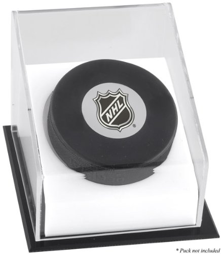 The deluxe hockey puck display case display is made of 1/8th thick acrylic. It features a clear acrylic removable lid and a black acrylic base. Perfect for displaying a collectible puck. Measures 4 1/2" x 4 1/8" x 4". * Memorabilia sold separately.